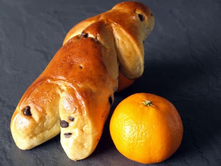 Pour en savoir plus sur les aliments de cette recette de desserts, rendez-vous ici sur notre guide des aliments. En fait cela ne diffère pas vraiment de notre cougnole (ou coquille):. Pour les yeux, le nez et les boutons, enfoncer les raisins à l'aide de la pointe d'un couteau.